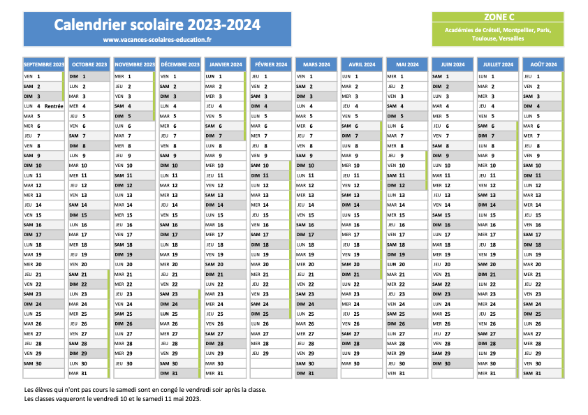 Calendrier vacances scolaires académie Montpellier 2023-2024